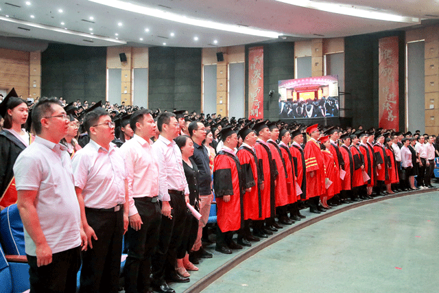 优秀毕业生代表金创21401班陈泽钦发言,他深情表白:“当我们走出校门,母校的校训永远是我们的精神灯塔,“明德尚学”让我们保持思想的高度,“笃行致新”让我们拥有行动的力量,我们将带着法商烙印,把个人理想融入国家发展的洪流,在时代的画布上书写属于这代人的青春诗行。”