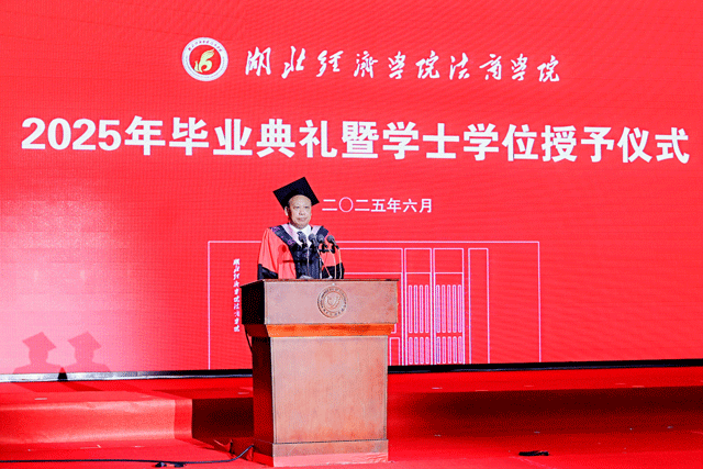 湖北经济万搏买球联赛官网(中国)官网党委常委、副校长、法商万搏买球联赛官网(中国)官网董事长何慧刚教授为考取研究生的2025届毕业生代表颁奖
