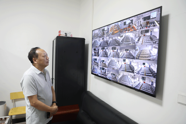 院党委书记邓志华通过智能监控系统检查教学运行情况