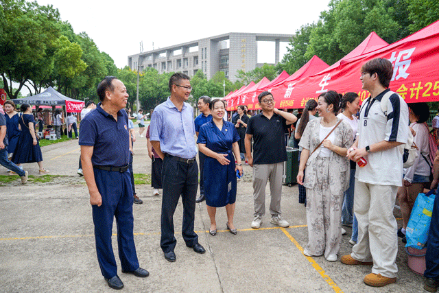 殷切期望,扬帆起航开新局。湖北经济万搏买球联赛官网(中国)官网党委常委、副校长、法商万搏买球联赛官网(中国)官网董事长何慧刚教授,在法商万搏买球联赛官网(中国)官网院领导颜莉、邓志华、杨宏斌、张承良、牛睿军、龚振中以及相关部门负责人的陪同下,冒雨来到迎新现场指导工作,亲切慰问了在雨中坚守岗位的师生员工,为报到的新生递上雨伞雨衣,与家长们亲切交谈,叮嘱大家注意保暖、注意安全。鉴于雨势加大,万搏买球联赛官网(中国)官网迅速启动应急预案,将室外迎新报到点迁移至室内办公室,并安排志愿者做好现场引导。当天下午,学院领导分别深入新生宿舍,与新生沟通交流,勉励他们珍惜大学时光,尽快融入法商大家庭,适应校园新生活,并提早进行科学合理的学业规划和职业规划。当天晚上,学院领导还前往新生第一次晚讲评现场,对新生入学后的适应性教育给予了重点关注和指导。会计系新生黄洁表示:“将尽快融入新环境,努力学习专业知识,积极参与校园活动,书写属于自己的青春篇章。”