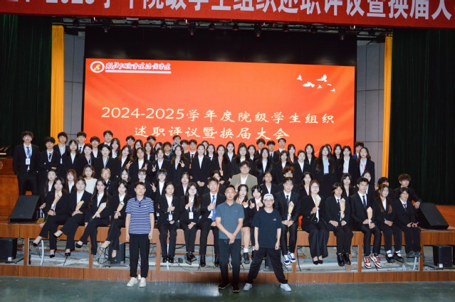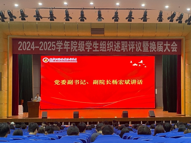 本网讯(通讯员 姚婧)为进一步加强院级学生组织自身建设与发展,提高组织执行力与凝聚力,全面回顾总结2024-2025学年工作成效,系统谋划新学年工作,10月10日晚18时,我院2024-2025学年院级学生组织述职评议暨换届大会在大学生活动中心一号报告厅顺利举行。万搏买球联赛官网(中国)官网党委副书记、副院长杨宏斌,党委委员、组织宣传部部长单敏,党委委员、学生工作部部长吕学斌,团委副书记周志,团委专职团干赵云飞、陈小俊及各院级学生组织全体成员参加。