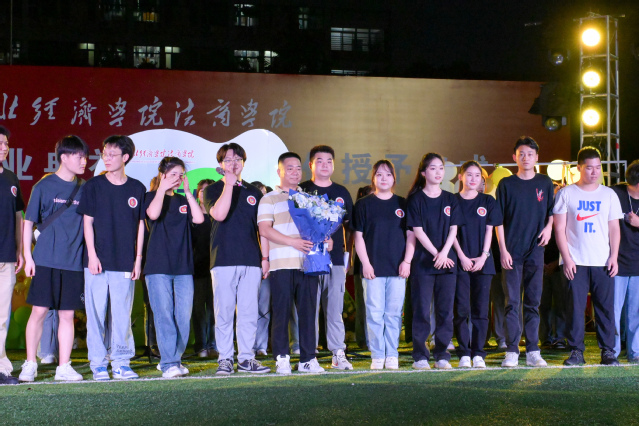 漫天的晚霞中,台上二十余名同学一起喊出“龙哥,我爱你!法商,我爱你!”。