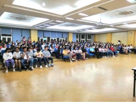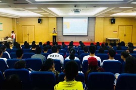 首先,朱必松学长以自己的经历展开话题,开门见山提出了一个问题——为什么“没有伞的孩子必须努力奔跑?”接着与我们分享了成功的经验,从方向、思维、团队领导与学习能力四个方面向听众详细阐述了成功的方法,即“怎么跑?才能跑出自己想要的生活?”在讲授的最后阶段,朱学长为在场同学提供了一个向成功迈进的阶梯,通过赏阅读书“百校争霸赛”,也设置奖项更加提高了同学们参与的积极性,并以“提升自我,为母校争光”为口号。