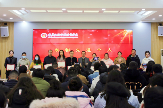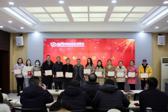会上,陈昀为2022年度“优秀辅导员、班主任”和“就业、创业工作先进个人”颁发荣誉证书并合影留念。