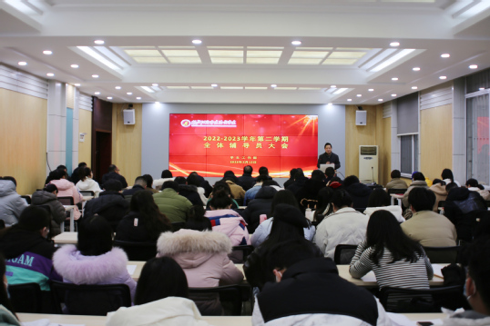 本网讯(通讯员 郝传策 摄影 胡敏)为进一步提升万搏买球联赛官网(中国)官网融合育人水平,守牢安全稳定发展底线,开辟学生工作新境界、新生态、新局面,2月12日,我院在法商楼111室召开全体辅导员(班主任)大会,院长陈昀教授、党委书记邓志华出席,各系党总支书记、全体辅导员(班主任)和学生工作部、团委全体成员参加。会议由党委副书记、副院长杨宏斌主持。