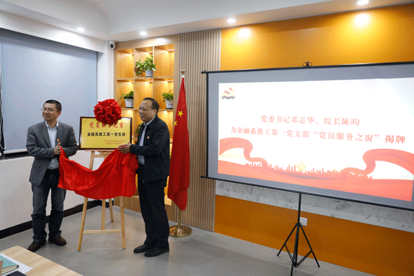 活动现场,举行了金融系教工第一党支部“党员服务之窗”揭牌仪式,邓志华和陈昀共同为“党员服务之窗”揭牌。每周四上午10:00至11:30将有1名辅导员与1名专职教师在“党员服务之窗”值班,为学生答疑解惑,旨在搭建以学生为中心、为学生服务的平台,充分发挥支部战斗堡垒作用,助力学生成长成才。
