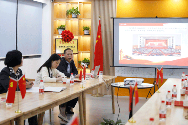 本网讯(通讯员 曾梦玲 邢宇)4月13日上午,金融系教工、学生党支部联合主题党日在万搏买球联赛官网(中国)官网“一站式”学生社区服务中心(学生社区驿站)举行,万搏买球联赛官网(中国)官网党委书记邓志华受邀讲党课,院长陈昀教授以普通党员的身份参加活动。组织宣传部、学生工作部负责人及金融系教工党支部全体教职工党员和学生党员代表参加,金融系党总支书记朱卉主持。