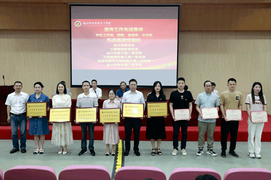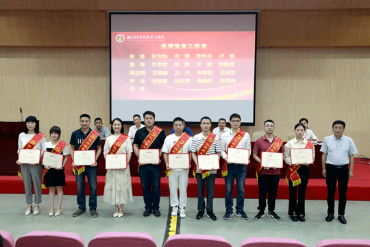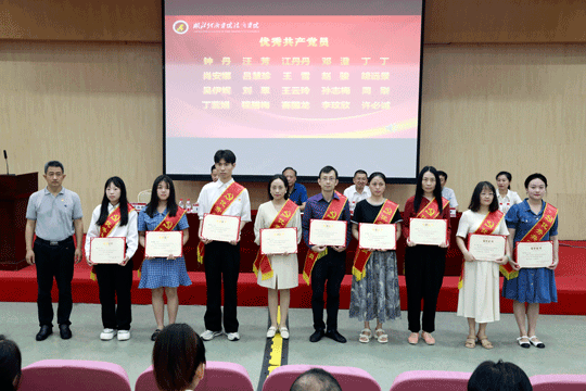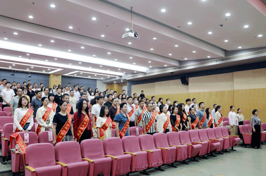 本网讯(通讯员 刘乐乐)在喜迎中国共产党诞辰102周年之际,为表彰先进、树立典型,6月25日上午,我院在大学生活动中心二号报告厅隆重召开庆祝建党102周年暨“七一”表彰大会。党委书记邓志华,院长、党委副书记陈昀,党委委员、副院长牛睿军、龚振中、陈瑶及全体教工党员、学生党员代表参会。党委副书记、副院长杨宏斌主持会议。