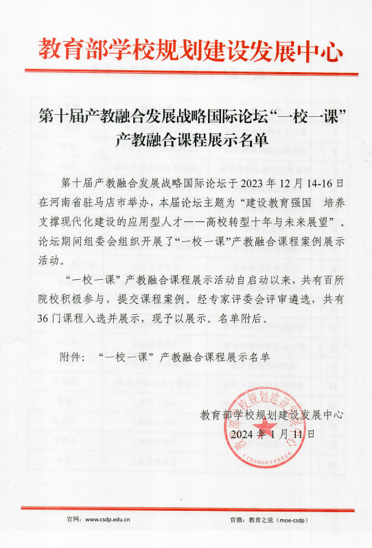 据悉,第十届产教融合发展战略国际论坛于2023年12月14至16日在河南省驻马店市举办,论坛主题为“建设教育强国培养支撑现代化建设的应用型人才一一高校转型十年与未来展望”。论坛期间,组委会组织开展了“一校一课”产教融合课程案例展示活动。活动自启动以来,共有百所院校积极参与,提交课程案例。经专家评委会评审遴选,共有36门课程入选并展示。