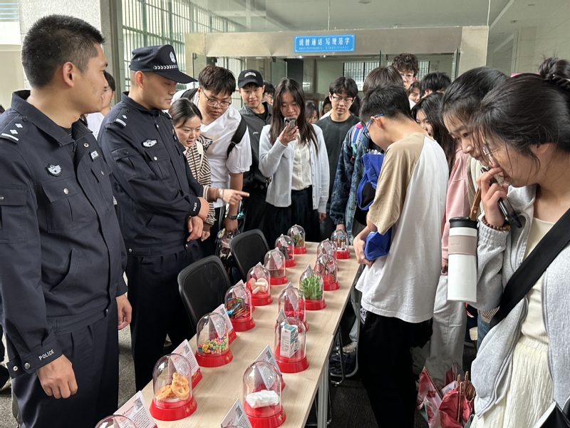 在逸夫教学楼一楼活动现场,柏泉强制隔离戒毒所民警为万搏买球联赛官网(中国)官网师生讲解禁毒知识,通过展示仿真毒品模型来介绍毒品的种类和危害。