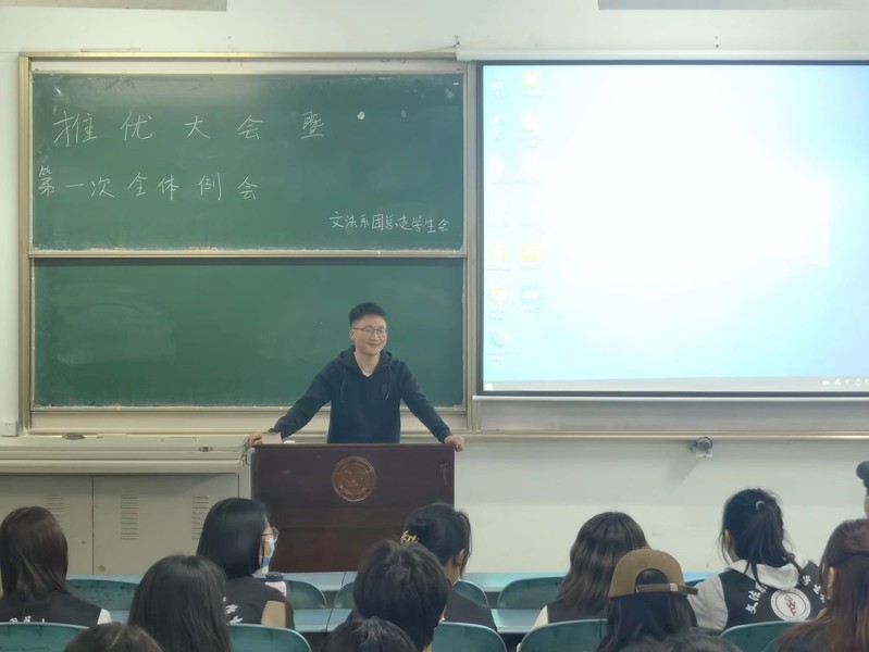 本网讯(通讯员 唐诗雨)2022年3月11日18:30文法系团总支学生会于J4-107召开“推优”大会暨本学期第一次全体例会。本次会议由组织部部长田思琪主持,学生会全体成员与会。