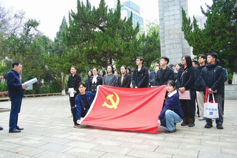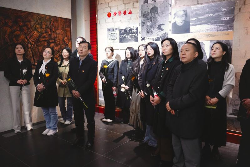 在讲解员引导下,牛睿军一行首先参观了施洋烈士纪念馆,通过珍贵史料重温了施洋烈士作为“二七”大罢工著名领袖、劳工律师为工人运动英勇献身的壮烈一生。随后,牛睿军一行在庄严肃穆的革命烈士纪念碑前列队肃立,敬献鲜花并集体默哀致敬。在文法系党总支书记张雄涛领誓下,全体党员面向党旗重温入党誓词,铮铮誓言在苍松翠柏间久久回荡。