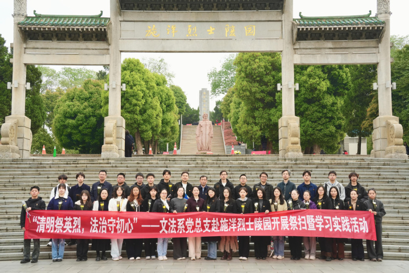 本网讯(通讯员 夏贤喆 邢宇 摄影 刘志杰)清明寄哀思,热血铸忠魂。为缅怀革命先烈、传承红色基因,4月2日上午,院党委委员、副院长牛睿军联系文法系赴武汉施洋烈士陵园开展“清明祭英烈,法治守初心”红色教育活动。文法系师生党员代表37人参加活动。