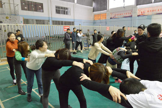 趣味运动会在体育馆一楼举行,以增强内部凝聚力、增进同事之间友谊、丰富员工业余生活为初衷。活动共设5个团体项目,分别为踢毽子比赛、团队跳绳比赛、扔毽球进圈、穿T恤衫接力赛、袋鼠跳接力比赛。各工会小组进行激烈比拼,分别评出了前三名。活动的开展使广大教职工舒缓了工作压力,锻炼了身体,同时也增强了健身意识,营造了和谐氛围。