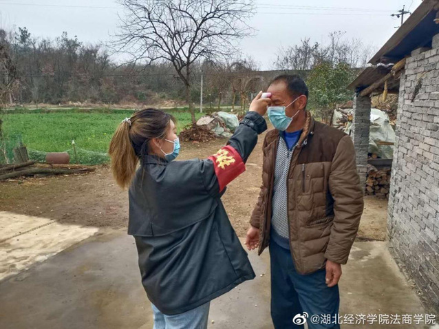 电商18303班曾佳同学,作为一名入党积极分子,第一时间报名参加随州市随县洪山镇青龙庙村防疫志愿者。曾佳同学每天早出晚归,她工作的主要内容是为村民进行疫情知识宣传和巡逻,劝导村民少外出。由于村民大多有饭后散步的习惯,尤其是中老年人,他们意识不到肺炎疫情的严重性,甚至不带口罩就外出。面对这一情况,她和防疫志愿者们每天准时出现在指定的区域进行防疫宣传,通过手机图片、新闻等方式,向来村民告知本次疫情的严峻形势,耐心地劝导村民早日回家。当村委会办公室出现工作极度繁忙、人手暂缺的时候,她主动去协助村干部对村民进行体温测量、信息登记等志愿工作。曾佳同学始终坚守在防疫一线基层岗位,每天只要戴上红袖章,她就充满了力量,能为防疫工作贡献一份自己的力量,能让更多人平安的渡过疫情,这是她最大的愿望。
