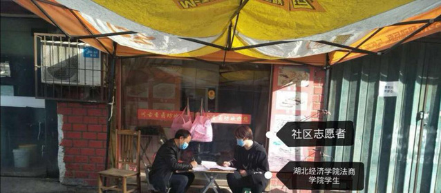 计科18401班学生樊俞理,湖北省武穴市龙潭社区防疫一线志愿者。2月10日是疫情严控关键期,樊俞理主动报名成为武穴疫情防控应急志愿者团队,经过培训考核合格,他被分配到龙潭社区,在小区路口设卡点进行人员和车辆管控、测量体温、登记出入市民和入户宣传防疫知识等工作。面对少数市民不支持、态度强硬冲卡点等违法行为,樊俞理把所学的法律知识结合国家政策、疫情严重情况耐心向市民宣讲,经过和风细雨劝说,市民闯卡点的行为越来越少。工作中,热心人爱心捐赠、社区志愿者团结一心、邻里间守望相助都让小樊感动。他说,我们全家都在抗疫一线,我作为“00”后青年团员更是义不容辞。樊俞理充分体会到:“越是在特殊时期,越是到关键时刻,越能感受到人心凝聚起来的磅礴力量。”