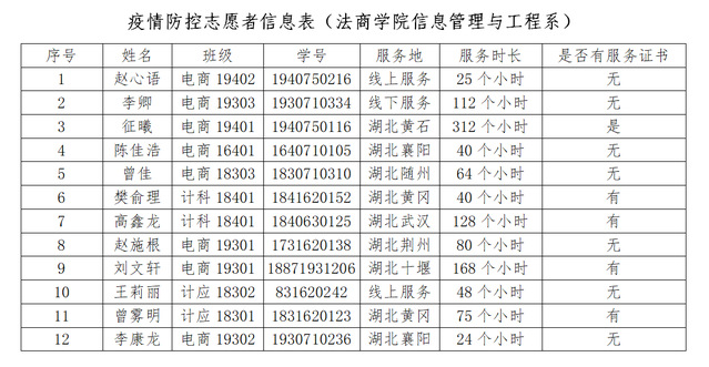 据统计,信息管理与工程系共有12名学生积极参加防疫志愿服务活动,其中有5名学生获得防疫志愿者证书。信息管理与工程系团总支深入开展线上主题团日活动,并对征曦、樊俞理、高鑫龙、刘文轩、曾雾明等12名防疫志愿者的先进事迹进行广泛宣传与新闻报道。
