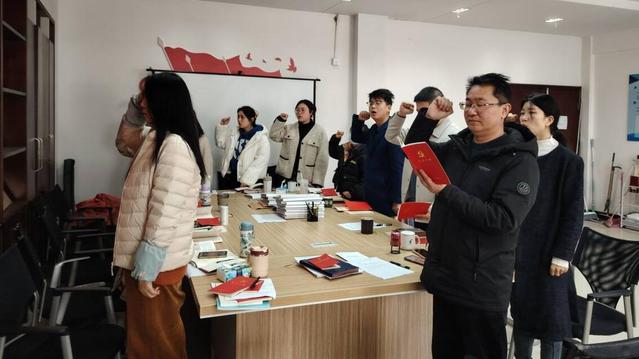 活动在庄严的氛围中拉开帷幕。首先,郝传策领读入党誓词,全体党员跟读,重温入党初心,坚定理想信念。随后,郝传策、梁旭等多位同志依次朗读《中国共产党章程》第二章至第十八条,在诵读中强化党员对《中国共产党章程》的理解与尊崇。紧接着,全体党员将1 - 3月份党费统一交给支部组织委员梁旭,自觉履行党员义务。