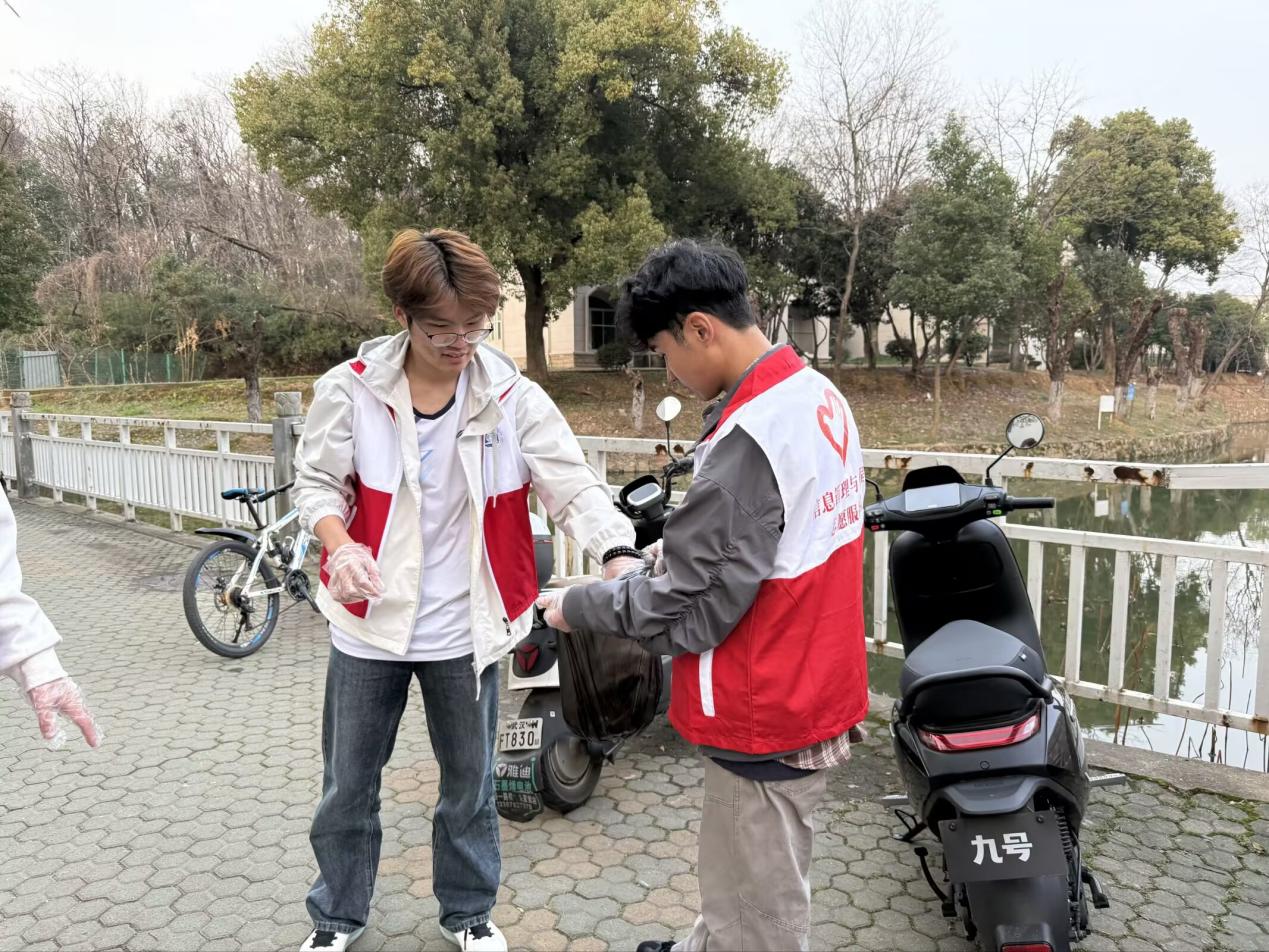 活动中,志愿者在老师带领下分组协作,携带垃圾袋、扫帚等工具,对梅苑、竹苑宿舍周边公共区域进行全面清理。大家不怕脏,不怕累,分工明确,细致清理路面垃圾,捡拾绿化带杂物,用双手擦亮校园角落,以实际行动践行“奉献、友爱、互助、进步”的志愿精神,充分展现了信管系学子乐于奉献、积极向上的良好风貌。