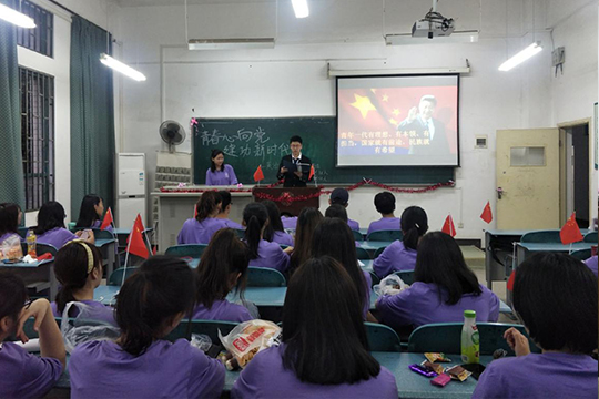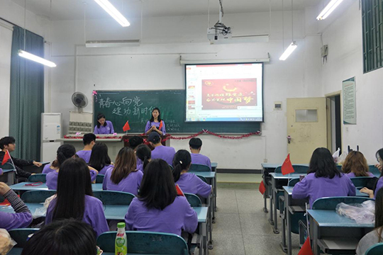 本网讯(通讯员余逸君)5月15日晚上18:30, 英语18402班团支部在J4- 110开展“青春心向党,建功新时代”主题团会,吴子茗同学和张永佳同学担任主持,辅导员胡文红老师、团支部全体团员参加。