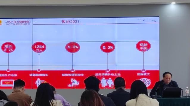邓志华从“数说2023”、“2024年主要预期目标”、“2024年政府工作十大任务”三个层面,对2024年全国两会政府工作报告进行了深入细致的解读。