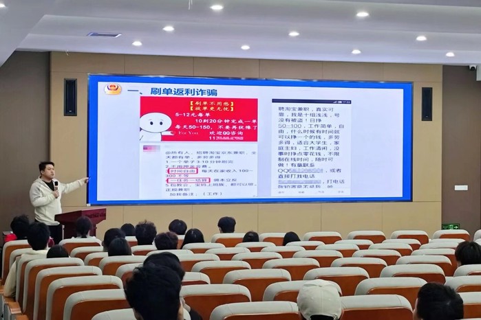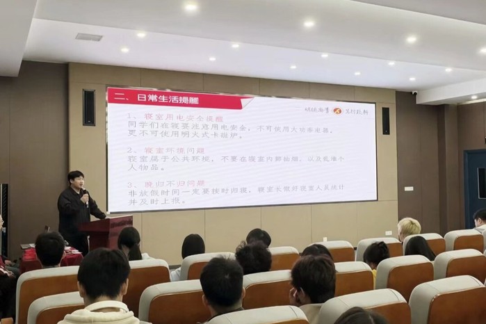 马华强老师以“提高反诈安全意识,共建平安和谐校园”为题进行反诈知识宣讲;李天老师为新生开展晚讲评,讲解一周事务。