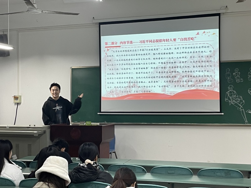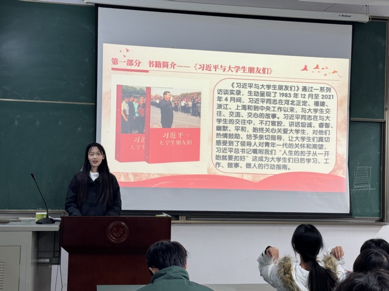 与此同时,“悦学习•跃青春”系列活动的另一重要板块——全系利用晚点评时间,在各团支部如火如荼开展的《习近平与大学生朋友们》主题宣讲,也收获了热烈反响。各班团支书化身宣讲员,精心准备讲稿、制作生动课件,引领同学们深入领会书中要义,使其深刻认识到要胸怀远大理想,将个人成长与国家命运紧密相连,厚植爱国主义情怀。